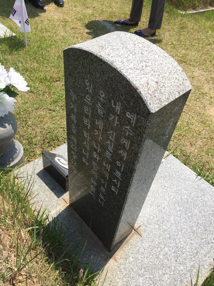 광주 양림동에서 아침 일찍 왔다는 지팡이를 짚은 할머니는 아들이 묻혀 있는 이곳은 찾았다.