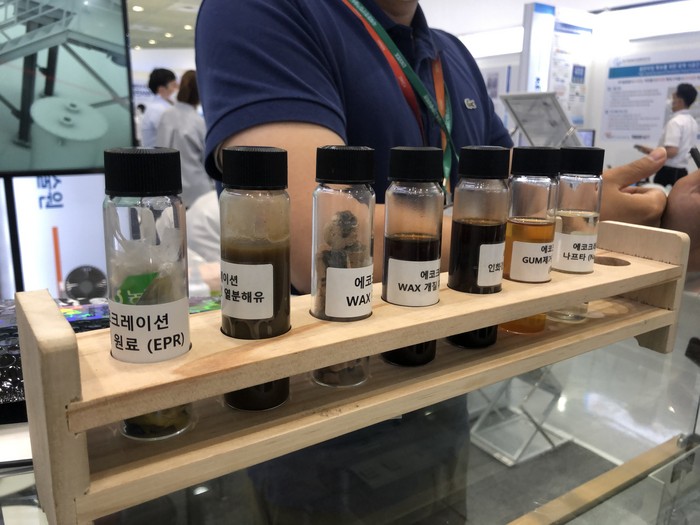 ▲2021 에너지 환경산업전 엔벡스 전시회에서 폐플라스틱, 폐비닐을 열분해방식으로 품질이 좋은 기름을 축출하는 기술도 선보였다. 현재, 영농폐기물, 바다에서 버려지는 폐어구까지 원료화가 가능해 새로운 자원순환 사이클링으로 경제성과 환경성까지 갖췄다는 평가다. SK이노베이션을 비롯해 퓨처에너지홀딩스는 생산기지구축을, 한국지역난방공사, 동서발전은 이를 기반으로 대체보조연료로 채택해도 충분하다는 입장이다. 현재 한국에너지기술연구원 중심으로 에코크레이션, 도시유전, 리보테크 등 특화된 활용기술로 기름생산을 박차를 가하고 있다. 사진 김영민 기자 |