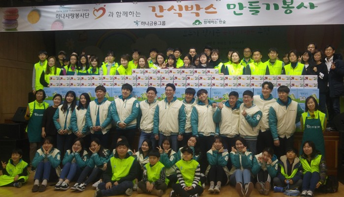 [화학신문 최인배 기자]하나금융그룹의 하나사랑봉사단과 사단법인 함께하는 한숲이 17일 서대문구청 대강당에서 봉사자 및 함께하는 한숲 사업팀 100여명이 참석한 가운데 지역 저소득 가정 아동을 위한 간식박스 만들기 봉사를 진행했다고 밝혔다.