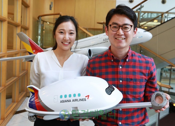여행가방 전문 제조업체 럭키팩토리와 제휴를 맺어 제작된 '아시아나350 아동용 여행캐리어'는 조종석 창문 부분이 검은색으로 도색된A350 항공기의 형상을 본 땄으며, 크기 55cm X 36cm X 23cm로 아동들이 여행다닐 때 끌고 다니기 편하게 디자인된 것이 특징이다.
