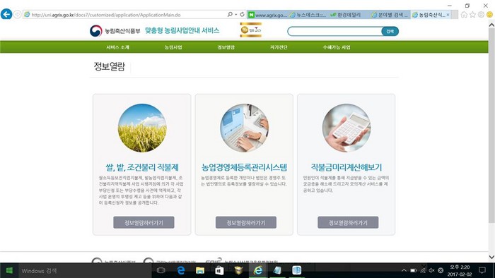 아울러 축적된 농업경영체 정보를 활용해 개별 농업인이 지원받을 수 있는 사업을 직접 조회할 수 있는 '맞춤형 농림사업 안내 서비스'를 실시하고 있다.