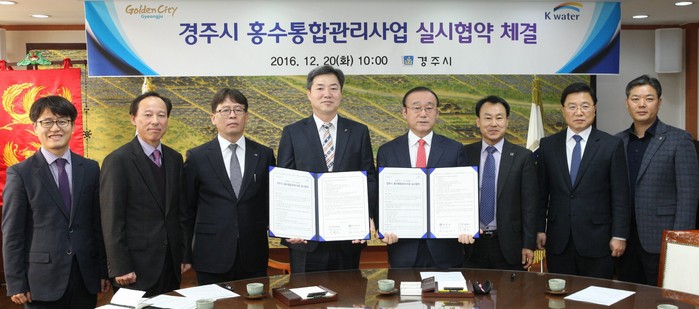 경북 경주시와 한국수자원공사(K-water)는 20일 '홍수통합관리사업 실시 협약식'을 가졌다.
