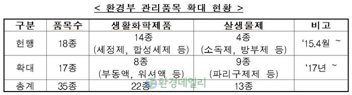 이번 조치는 가습기 살균제 참사 이후 생활화학제품 안전성, 1급 발암물질인 미세먼지 등으로 인한 국민적 우려가 지속되고 있는 상황에서 이에 효과적으로 대응하기 위한 후속 조치다.