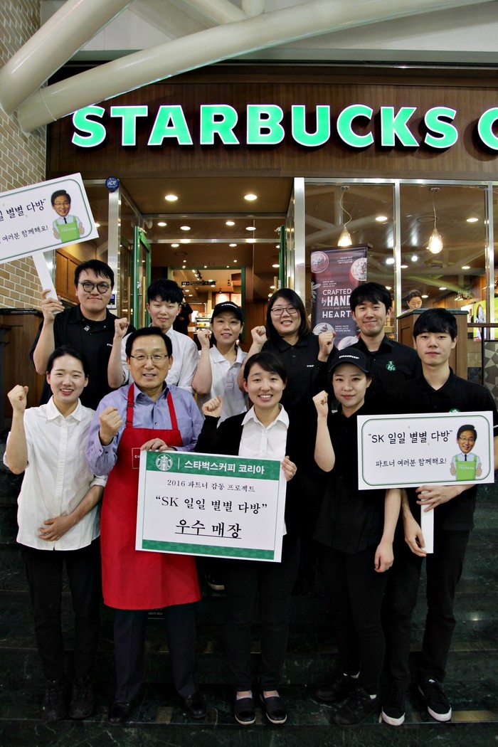 ㈜스타벅스커피 코리아 이석구 대표가 임직원(파트너)들을 격려하기 위해 매장을 깜짝 방문해 커피 교실을 진행하는 '일일 별별 다방' 이벤트를 전개하고 있다.