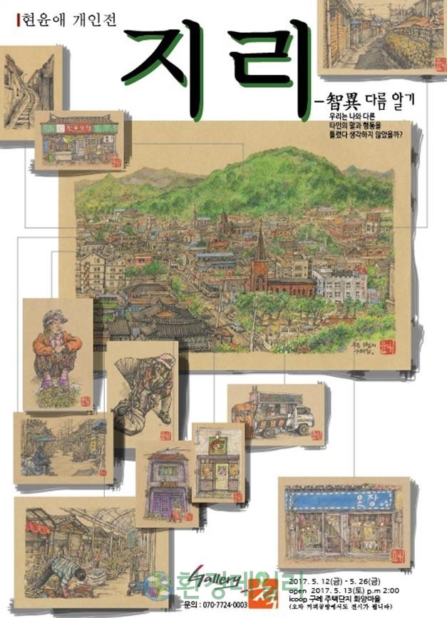 현윤애 작가는 4년 전 서울에서 구례로 이사 온 후 구례자연드림파크에서 아트디렉터로 자원봉사활동으로, 갤러리 척의 개관 첫 번째 전시회이자 작가의 3번 째 개인전이기도 한 '지리(智異) - 다름 알기'는 구례에서 생활하며 낯선 환경에 적응하기 위해 읍내, 새로운 가게, 골목길, 장터, 천은사 등을 다니며 만난 사람들의 친근한 모습과 정다운 풍경을 작은 그림으로 세밀하게 표현했다.