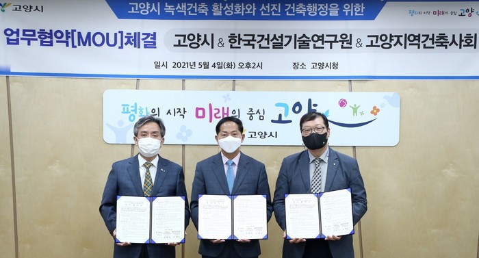 [화학신문 문종민 기자]고양시는 한국건설기술연구원·고양지역건축사회와 '녹색건축물 조성 활성화를 위한 업무협약(MOU)'을 체결했다고 4일 밝혔다.