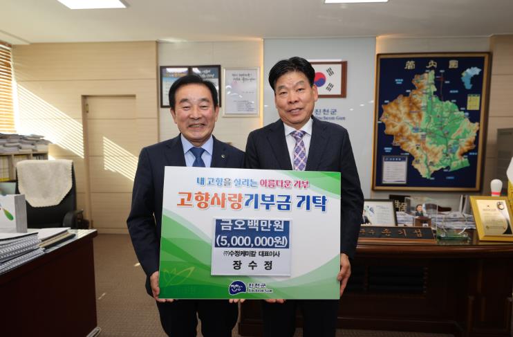 장 대표는 “진천군에 어떻게 하면 도움이 될 수 있을까 고민하다가 고향사랑기부제라는 제도를 알게 됐다”라며 “진천군이 선제적으로 고향사랑기금사업을 추진한다고 들어서 진천에 힘을 더하기 위해 고향사랑기부에 동참하게 됐다”라고 말했다.