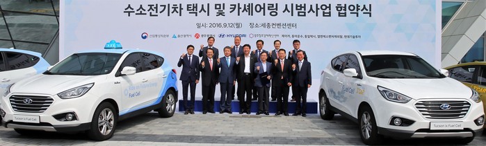 | ▲현대차는 산업통상자원부, 울산시와 함께 울산 지역 수소전기차 택시 시범사업을 시작으로 광주 지역 수소전기차 카셰어링 시범사업을 위한 양해각서를 각각 체결했다. |