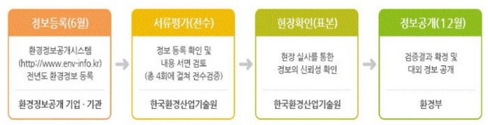 '환경정보공개 제도'는 '환경기술 및 환경산업 지원법'에 따라 운영하는 것으로 기업과 공공기관의 환경정보공개를 촉진해 녹색경영을 유도한다. 관련 자료는 환경정보공개시스템(env-info.kr)을 통해 환경오염물질 배출량 등의 정보를 공개하고 있다.