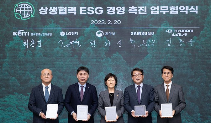 | ▲올 2월 환경부와 KEITI는 삼성전자, 엘지전자, 현대차그룹과 중소 중견기업 ESG 지원을 위해 손을 잡고 적극 추진하기로 했다. |