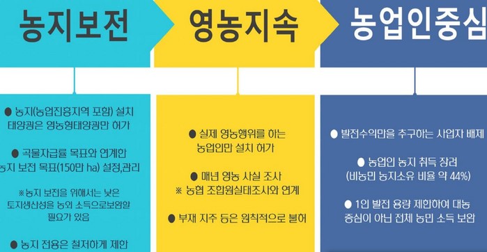 송 팀장은 이를 터전으로 살아가는 농업인에 대한 특별한 배려도 필요한 것 기정사실로 이 취지에서 농촌 재생에너지 정책은 농업인과 주민이 사업에 함께 참여하고, 발전수익을 공유하며, 난개발로 인한 경관 훼손을 최소화하면서 농촌 공간과 조화되는 방향으로 추진될 필요가 있다고 말했다.
