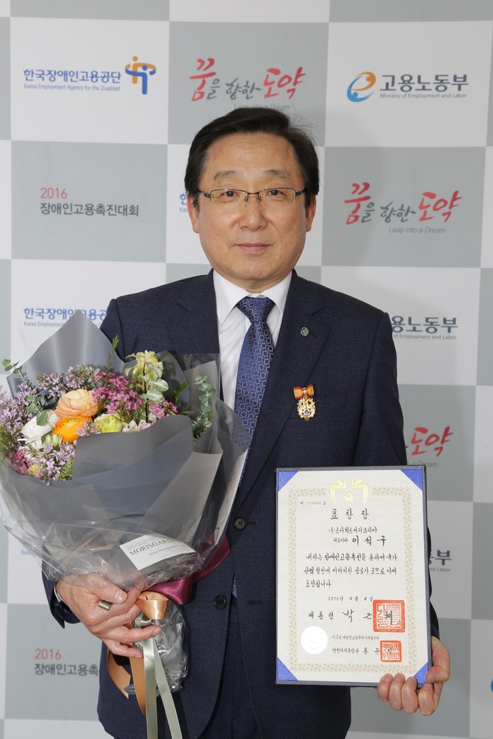 [화학신문 김영민 기자] (주)스타벅스커피 코리아 이석구 대표이사가 4월 6일 고용노동부와 한국장애인고용공단이 개최한 '2016 장애인 고용 촉진 대회'에서 장애인 고용 촉진 유공자 정부 포상으로 대통령 표창을 수상했다. <본지 기사 참조>