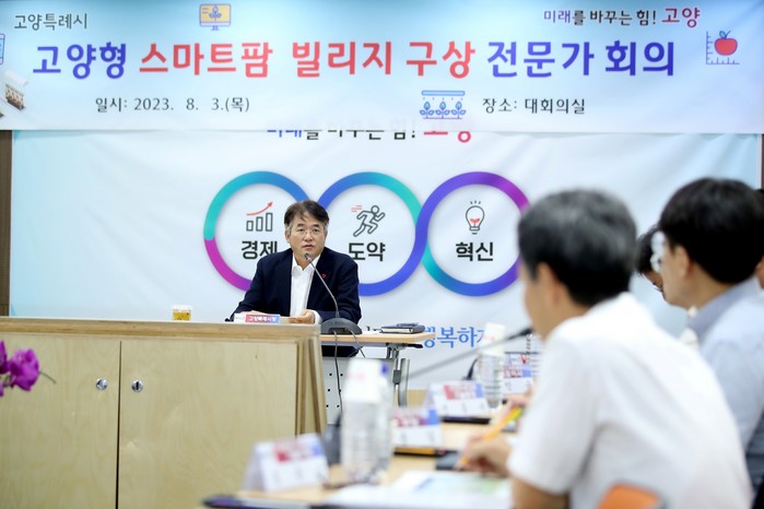 이번 회의는 각 전문가들의 의견과 제안을 수렴해 '고양형 스마트팜 빌리지'를 구축하기 위한 방향성과 새로운 아이디어를 발굴하기 위해 마련됐다.