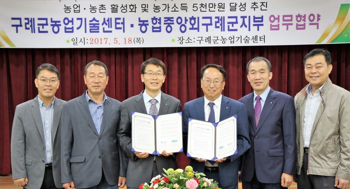 박노진 구례군농업기술센터 소장은 "이번 협약 체결을 계기로 '친환경농업도시 구례'의 경쟁력 강화, 지역농업 상생발전, 농가소득 5000만 원 달성을 앞당길 수 있도록 최선의 노력을 할 것"이라며 의지를 다졌다.