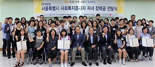 | ▲KB생명은 지난해 서울시 사회복지시설 종사자에게 자녀 장학금을 전달해 박수를 받았다. |