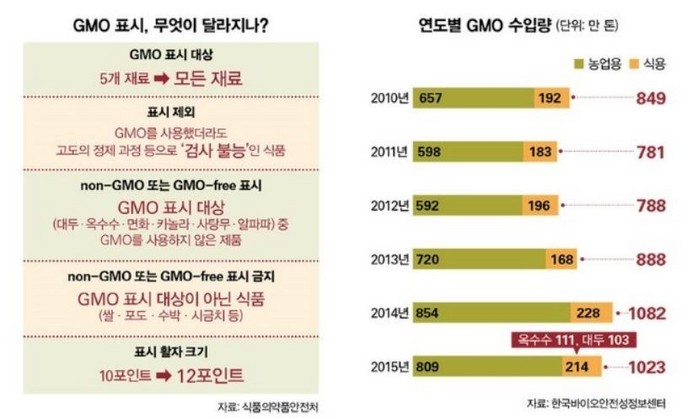 이번 19대 국회에서 통과된 GMO표시 관련 '식품위생법' 개정안에 따라 식약처의 개정 고시가 시행됐다.