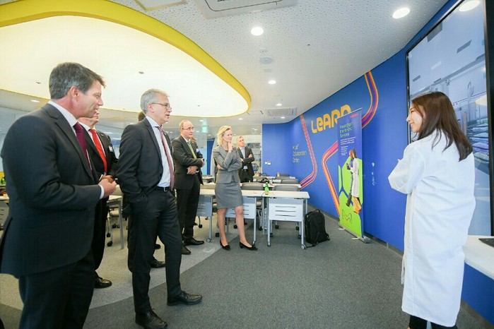 [화학신문 김영민 기자]한국과 독일의 중소기업 관계강화와 투자협력을 위해 타렉 알-와지르 독일 헤센주 부주지사(경제, 에너지, 교통, 지역개발부 장관) 외 35명으로 구성된 헤센주 대표단이 지난 4일 인천 송도의 머크 엠랩 협업센터(M Lab™ Collaboration Center)를 방문했다.