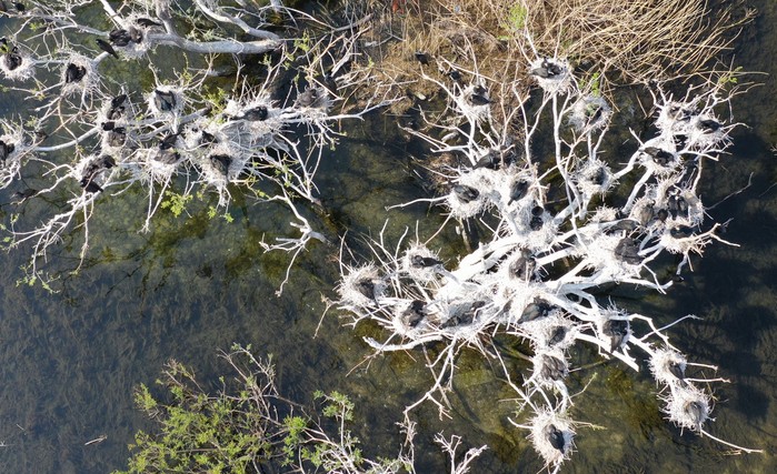 일부 조사에 따르면 텃새화된 민물가마우지 번식지 둥지수는 2018년 3783개에서 2023년 상반기 5857개로 1.5배 이상 늘었다.