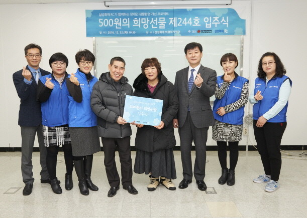 [화학신문 윤동혁 기자]장애인먼저실천운동본부(이사장 이수성)와 삼성화재RC(대표이사 안민수)가 12월에 '500원의 희망선물' 244호 가정을 선정하고 총 1900만원의 기금으로 가정을 개보수했다고 밝혔다.