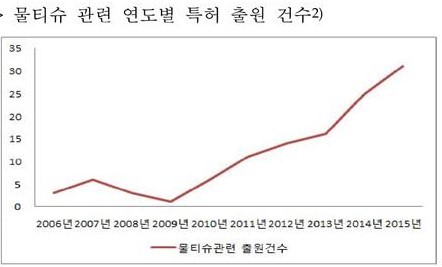 특허청(청장 최동규)에 따르면 물티슈 관련 특허출원은 2006년 3건, 2007년 6건, 2008년 3건에 고작이었지만 2011년에 11건이 출원된 이후 매년 두 자릿수 이상 특허가 출원되면서 꾸준히 증가하고 있다.