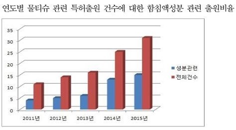 특허청 자료에 따르면 친환경성분을 포함하는 물티슈함침액 출원들이 점점 확산되고 있는 것으로 나타났다.