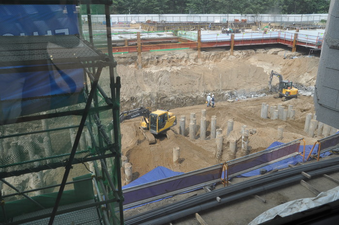 #신축공사 현장, 골조가 올라가면서 외벽에 차단하는 방진막은 현실적으로 공사장 내부에서 발생되는 시멘트 가루 등을 외부로 차단할 장치는 아니다.