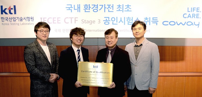 코웨이는 한국산업기술시험원(KTL)을 통해 IECEE로부터 시험 설비 및 제품 안전성 시험 능력을 인정받아 이번 CTF stage3 공인시험소를 취득했으며 이로 인해 자체 시험 결과만으로 국제 표준 규격인 CB인증을 취득 할 수 있게 됐다.