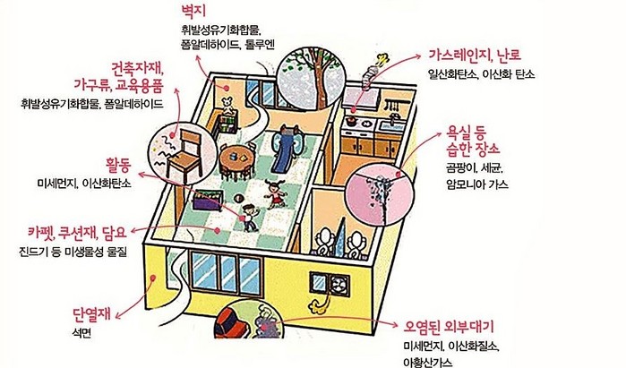 이중 실내 오염물질이 실외 오염물질보다 폐에 전달될 확률은 약 1000배 높다고 추정했다.