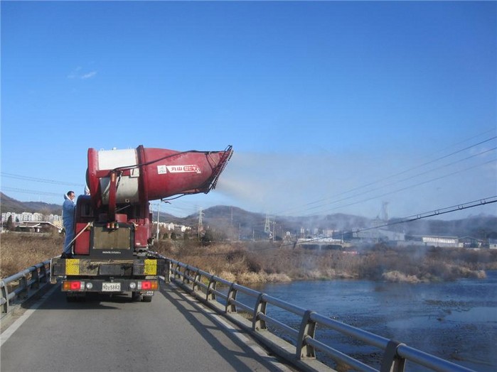우선 외부 유입차단을 위해 광역방제기를 이용해 관내 철새 도래지 주요 진입로를 중심으로 소독을 실시하고 고양시 농업기술센터에 24시간 거점소독시설을 운영해 외부에서 오는 축산차량을 일제 소독하고 있다.
