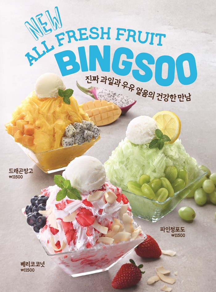 드래곤망고빙수는 동남아시아의 대표과일인 용과를 활용한 제품으로 생 망고와 생 용과, 라임셔벗이 들어가 새콤달콤한 맛이 특징이며, 파인청포도빙수는 청포도 얼음과 청포도, 파인셔벗이 들어가 청량감을 강조한 제품이다.