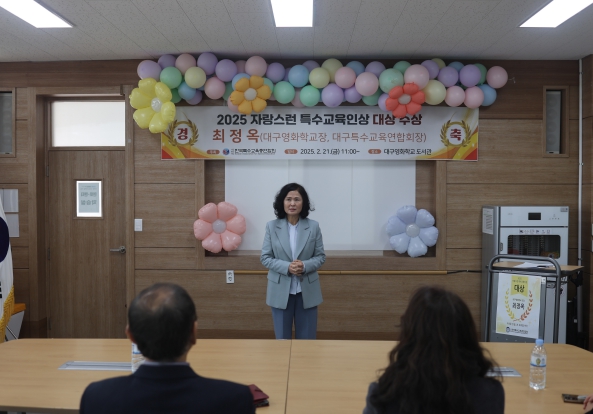 또한 교육환경 개선 및 교육과정 중심의 공간 재구조화 등 장애 맞춤형 교육을 위해 힘쓰며, 2022년부터 대구광역시특수교육연합회 회장직을 맡아 특수교육 발전을 위한 공을 인정받아 대상 수상의 영예를 안았다.