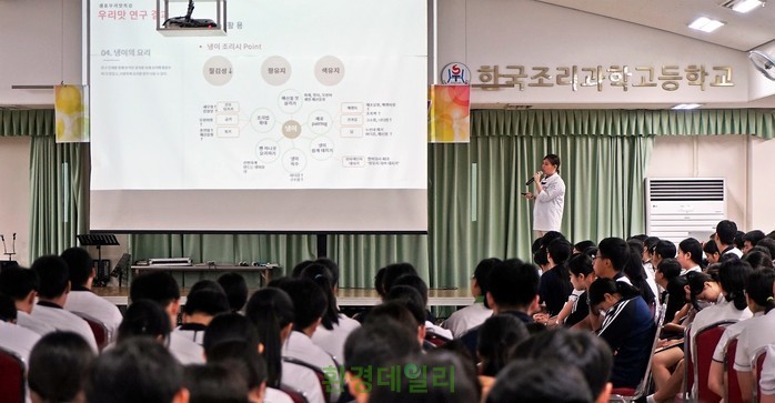 우리맛 연구중심 샘표가 지난 17일, 한국조리과학고등학교를 찾아 우리맛 특강을 진행했다. 샘표는 이날 조리과학고 학생 480여 명이 참석한 가운데, '우리맛을 만드는 사람들'을 주제로 강연을 개최했다.
