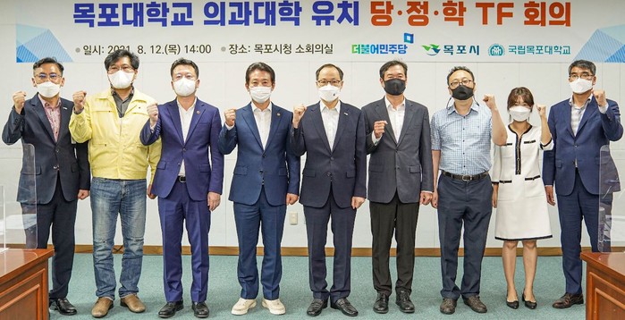 이와 관련, 더불어민주당, 목포시, 목포대는 당·정·학 TF단을 꾸리고, 12일 첫 회의를 개최했다. 추진단은 10명의 위원이 참석한 회의에서 ▲정부여당 의과대학 설립 동향 보고 ▲향후 TF단 운영 방안 모색 ▲의대 유치 추진방향 설정 및 발굴 과제 발표 ▲기관별 역할 등을 논의하는 한편 의대 유치의 구심점 역할을 할 TF단장으로 송하철 목포대 의대유치단장을 선출했다.