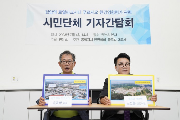 이어서 김진관 한국환경시민단체협의회장이 "2020년부터 중간·처리 작업에서 이뤄진 약 500만 톤 정도에 대한 파쇄, 분쇄 과정에서 발생했던 분진의 흩날림 방지를 위해 요구되는 최소한의 방진벽과 방진덮개 등이 설치돼 있지 않은 등 법이 지켜지지 않았다."며 "관할 행정기관조차도 특별한 조치를 취하기는커녕 묵인해 직무유기죄와 업무상 배임죄 등을 범한 혐의가 있다."고 강조했다.