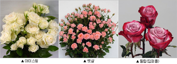 이번 공동 평가회에서 스프레이 품종 웨딩용 장미로 잘 알려진 순백색 '아이스윙', 수량이 많은 분홍색의 '햇살'과 스탠다드 품종으로 제12회 대한민국 우수품종상을 수상하며 수출대표 품종으로 알려진 '딥퍼플' 등 수출 주력품종들을 볼 수 있다.