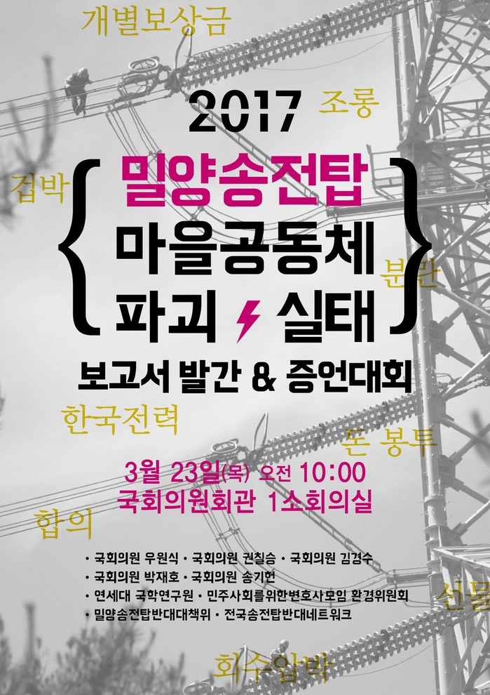 또한 민주사회를위한변호사모임 환경위원회, 밀양송전탑반대대책위 · 전국송전탑반대네트워크가 공동으로 주최했다.