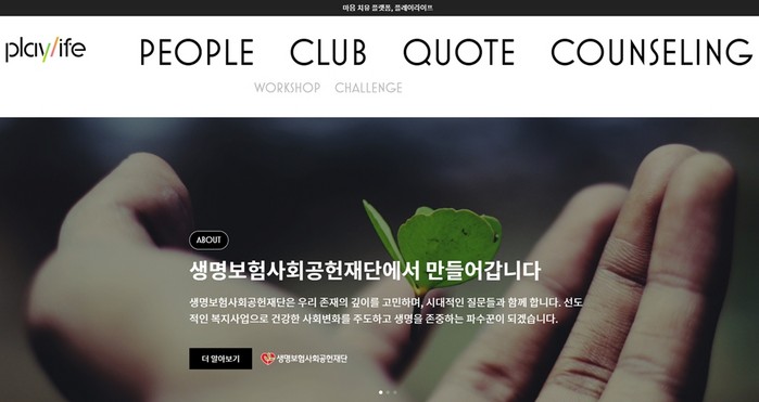 플레이라이프는 생명보험재단이 운영하는 마음 치유 플랫폼으로, 청년들의 정신건강 회복을 돕는 각종 콘텐츠 및 참여 프로그램을 선보이고 있다.