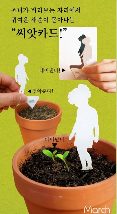 씨앗카드는 사람, 동물 또는 다양한 채소 모양의 종이 카드 아래에 씨앗이 부착된 특별한 카드다. 씨앗이 부착된 하단 부분을 흙에 꽂아두면 7~10일 후에 새순이 돋는 것을 볼 수가 있다. 카드에 글자를 적어서 키울 수 있고 다양한 메시지를 적어서 선물할 수도 있다.