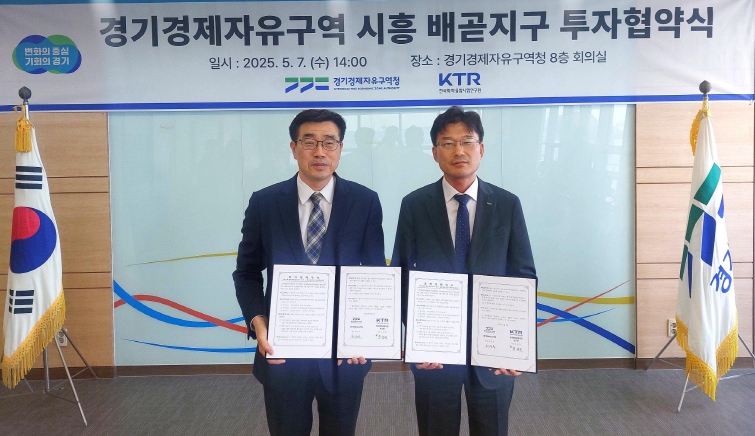경기경제자유구역청은 7일 오후 경기경제자유구역 8층 회의실에서 한국화학융합시험연구원과 이와 같은 내용의 투자협약을 체결했다.