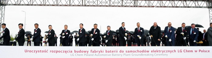 LG화학 전지사업본부장 이웅범 사장은 환영사에서 "오늘 기공식은 폴란드 자동차전지 공장을 세계 전기차용 배터리 및 부품 생산의 메카로 만들 것을 선포하는 뜻 깊은 자리" 라며 "LG화학 폴란드 자동차전지 공장이 유럽의 첫 대규모 자동차용 리튬 배터리 생산 기지인만큼, 유럽 전역의 전기차 산업을 활성화시키는 촉매제 역할은 물론 핵심 생산 허브로 자리잡을 수 있도록 모든 역량을 집중할 것"이라고 강조했다.