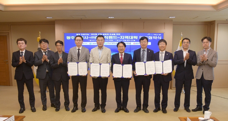 광주광역시는 전남대학교, 조선대학교, 광주과학기술원(GIST)과 함께 25일 시청 비즈니스룸에서 세계적 주문형 반도체(ASIC) 디자인 솔루션 대표기업인 ㈜에이직랜드와 인공지능·반도체 산업 육성을 위한 214번째 인공지능(AI) 비즈니스 업무협약을 체결했다.