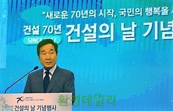 이낙연 총리는 기념사를 통해 20일 "그동안 건설산업이 어려움에 끊임없이 도전했는데, 이제는 도전을 받는 처지가 됐다."며 "국내는 사회기반시설(SOC), 주택건설 수요가 줄고, 해외에서는 개도국의 성장으로 도전받고 있다."고 말했다.