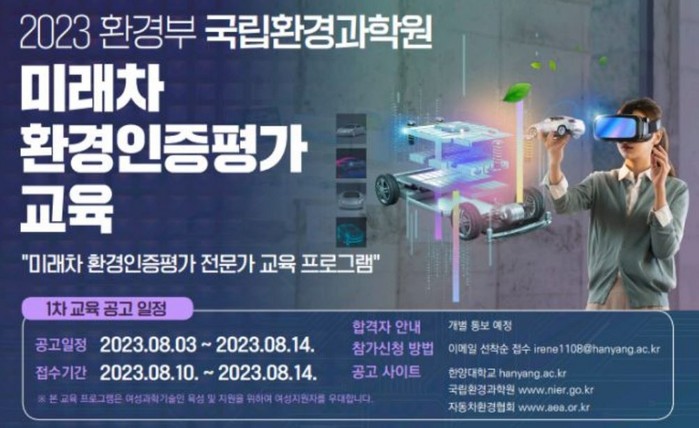 미래차 환경인증평가 교육은 올해 총 3개 차수로 진행된다. 1차(8월 21~25일) 및 3차 교육(11월 6~10일)은 대학(원)생을 대상으로 진행하는 기초 교육과정이다. 2차 교육(10월 23~27일)은 업계종사자를 대상으로 하는 '전문가 양성과정'으로 진행되며, 모든 교육은 5일간 비대면 이론교육과 대면 현장 교육을 병행한다.