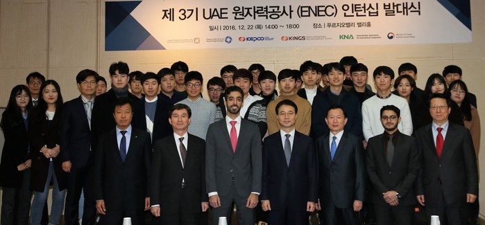 전국 대학교에서 선발된 대학생 30명(남 25, 여 5)은 내년 1월 8일부터 2월 21일까지 UAE(아랍에미라이트) 바라카 원전 건설 현장에서 7주간 인턴으로 근무하며 원자력 안전, 프로젝트 관리, 토목 건축 기계 전기 등 분야별 실무 중심의 교육을 받을 예정이다.