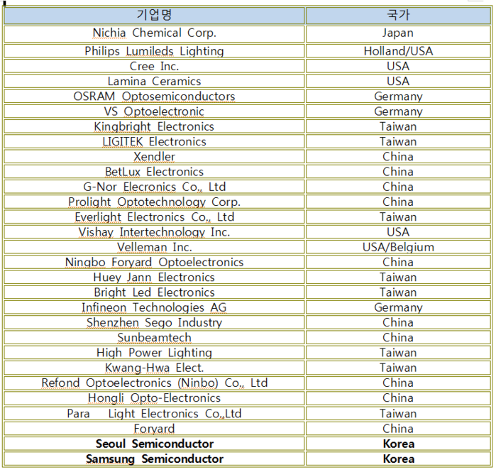 | ▲러시아 LED시장에 진입한 해외 기업(부품 포함) |