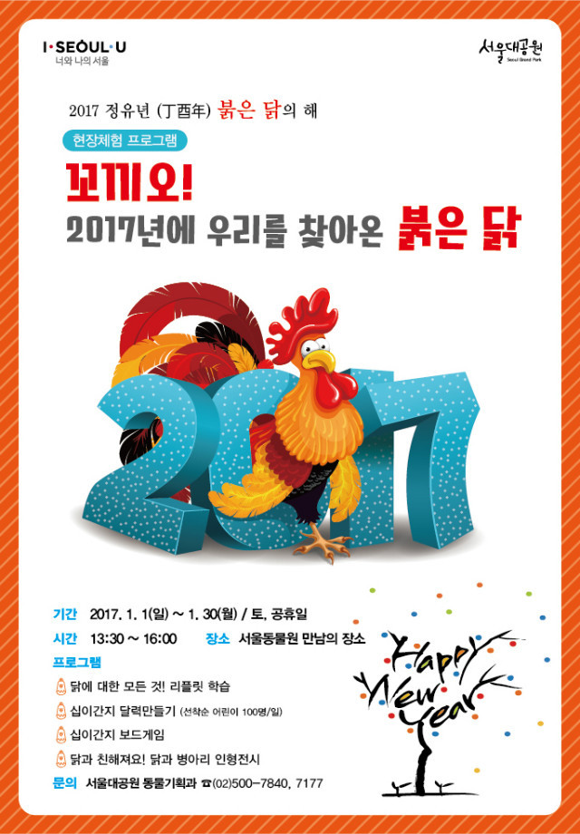 서울시, 서울대공원측은 2017년 새해벽두인 1월 1일부터 30일까지 한달동안 서울동물원 만남의 장소에서 붉은 닭에 관한 다양한 행사가 펼쳐진다.