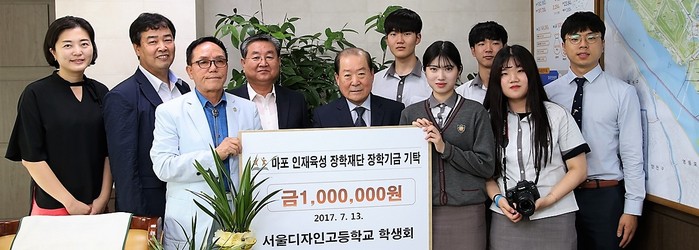 [화학신문 이수진 기자]13일 오후, 서울디자인고등학교가 마포인재육성장학재단의 장학기금으로 100만원을 기탁하고, 기탁식에 참여한 학생들과 함께 박홍섭 마포구청장과 이야기를 나누는 시간을 가졌다.