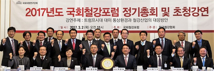 지난해 '우수 국회의원연구단체'로 선정된 '국회철강포럼(공동대표 박명재·어기구, 연구책임의원 정인화)'은 2일 국회 본관에서 정기총회를 개최하고 2017년에도 힘찬 활동을 다짐했다.