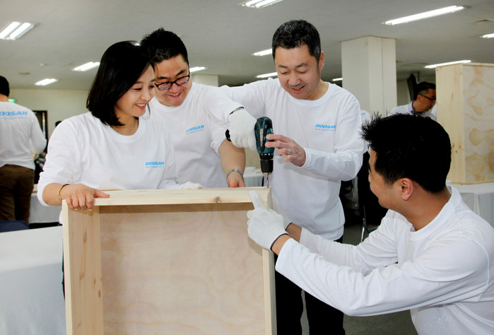 박정원 두산그룹 회장은 '따뜻한 가구 이야기'라는 주제로 진행된 서울 임직원 봉사활동에 참여했다.