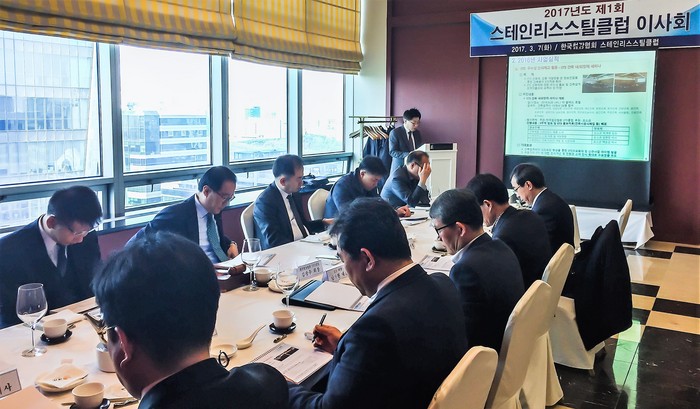 한국철강협회 스테인리스스틸클럽(회장 김광수, 포스코 STS 마케팅실장)이 3월 7일 오전 11시 강남구 대치동 포스코센터에서 2017년도 제1회 이사회를 갖고 올해 사업계획을 확정했다.